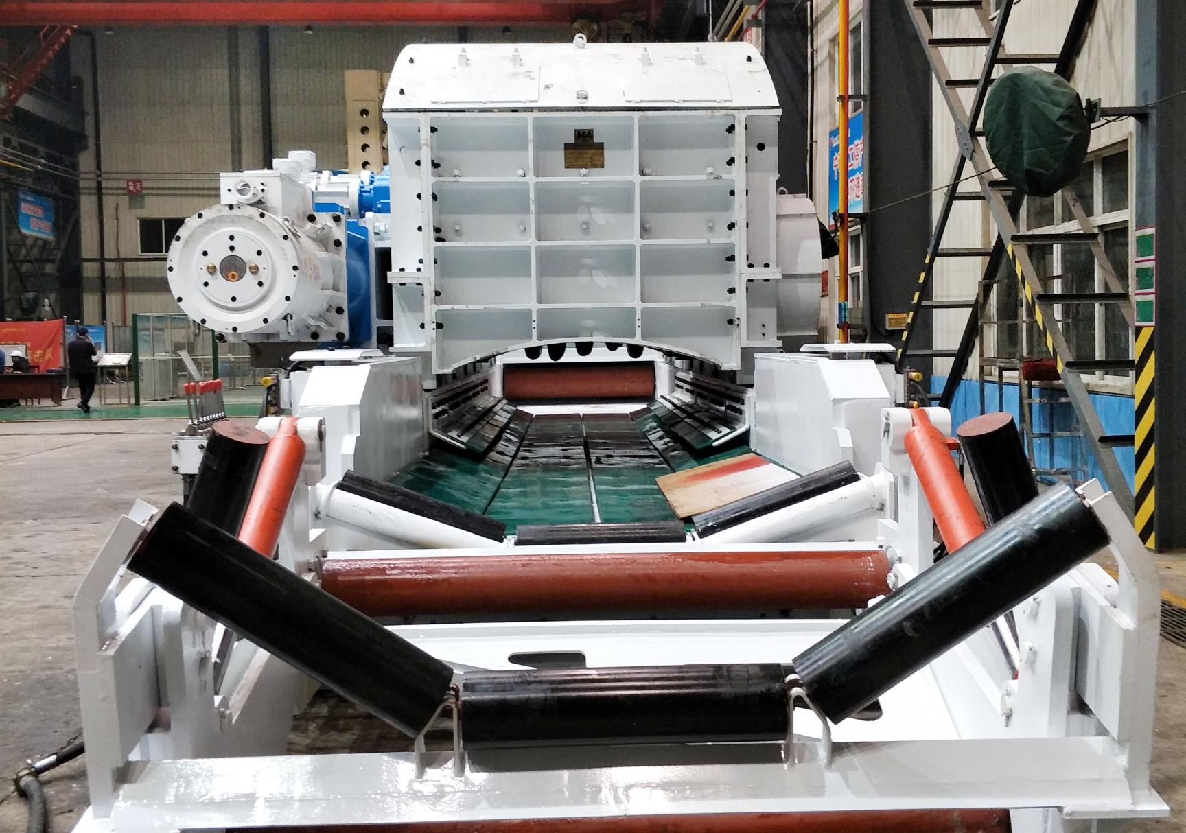 3.放在煤礦井下采面使用: 大塊物料的破碎從源頭破碎解決,目前我公司的產品已放在轉載機頭位置的自移機尾上 面,可以保護順槽皮帶及其他下游主要運輸皮帶的撕裂損壞等。