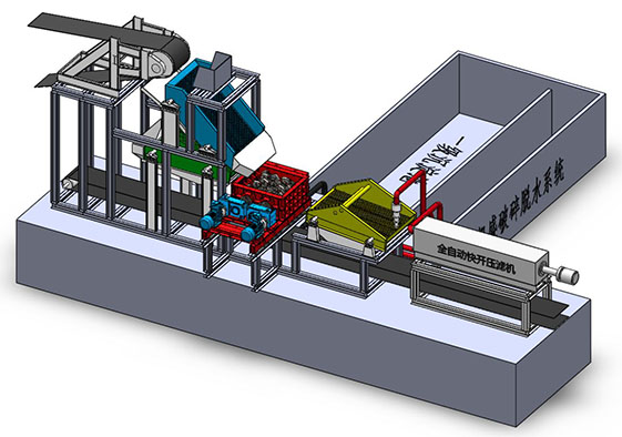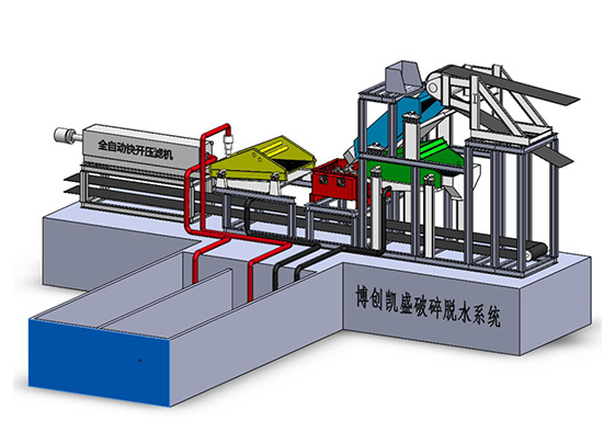 為了改善井下運輸條件,我公司多次派人員深入礦井并會同多方面專家共同開發(fā)研究,設計出原煤破碎脫水系統(tǒng)。系統(tǒng)包括破碎部分、一次脫水部分、二次高頻脫水部分、煤泥壓濾部分、電控部分。